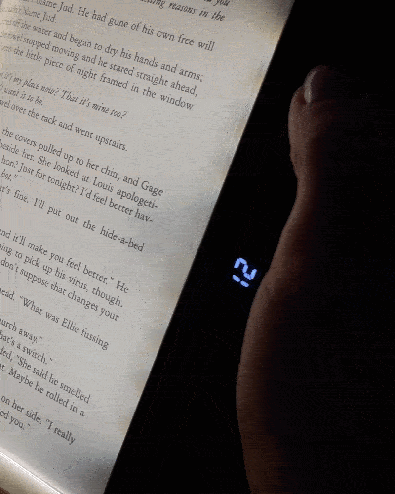 Slim like a bookmark and easy to carry anywhere. Slide it into your book, your bag, or your bedside table.
